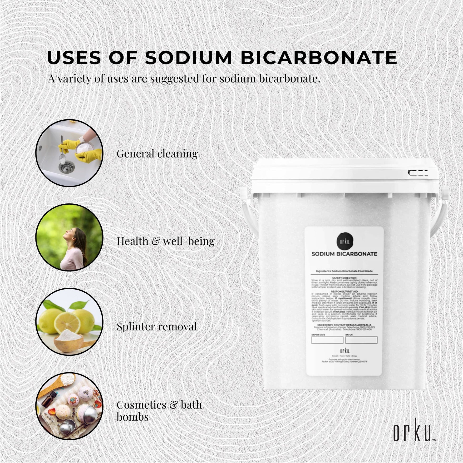 Sodium Bicarbonate, also known as Baking Soda and has been used for centuries in cooking, for cleaning and as a water softener. Its quite often referred to as Bicarb, Sodium Bicarb, Baking Soda, Cooking Soda, Cleaning Soda, Bread Soda or Bicarbonate of Soda.
