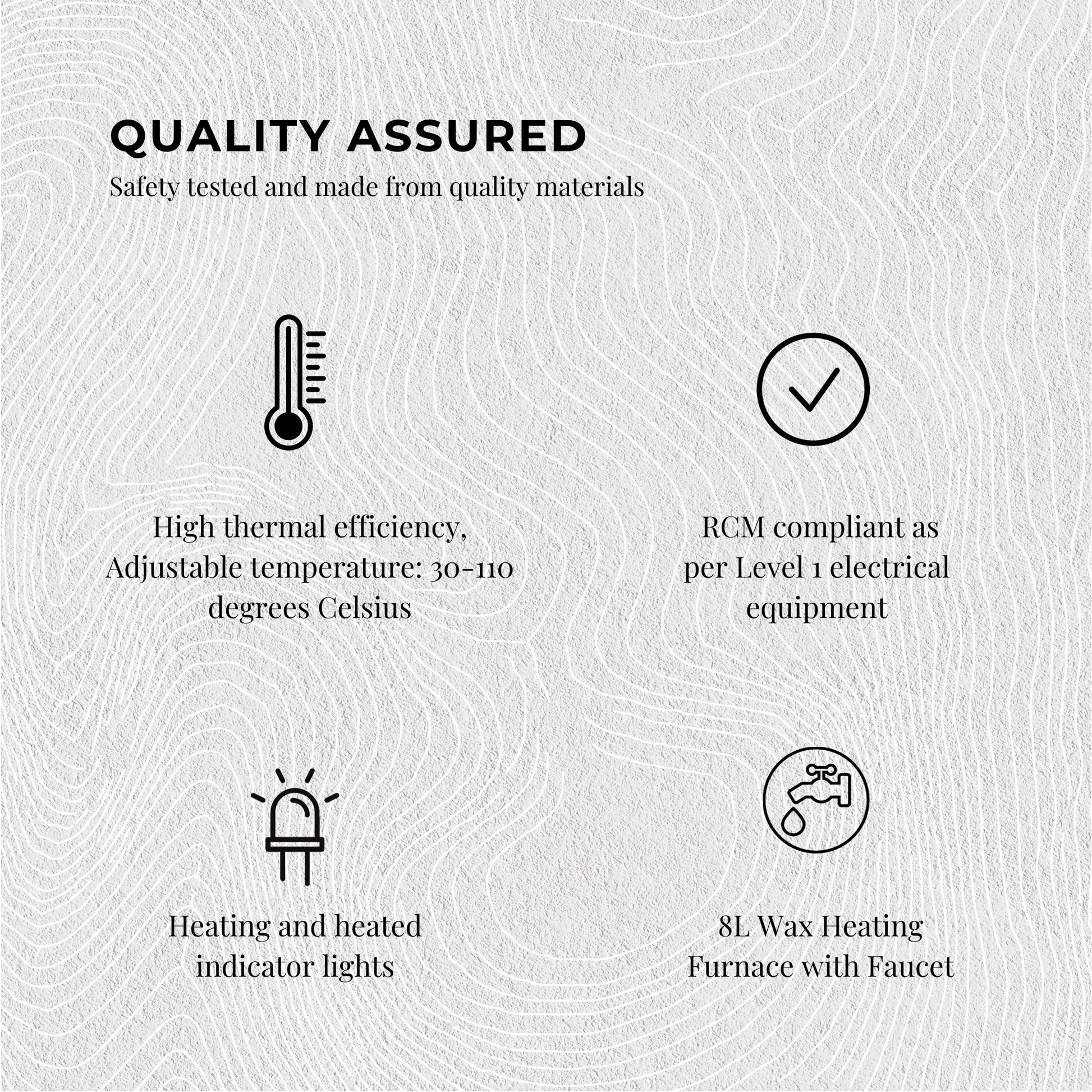 This wax melting furnace is an ideal addition to your candle making operation. With an 10L capacity and adjustable temperature gauge from 30-100 degrees celsius, it can be used to melt all kinds of candle making waxes such as soy, paraffin, bees, hard, beads, and more.