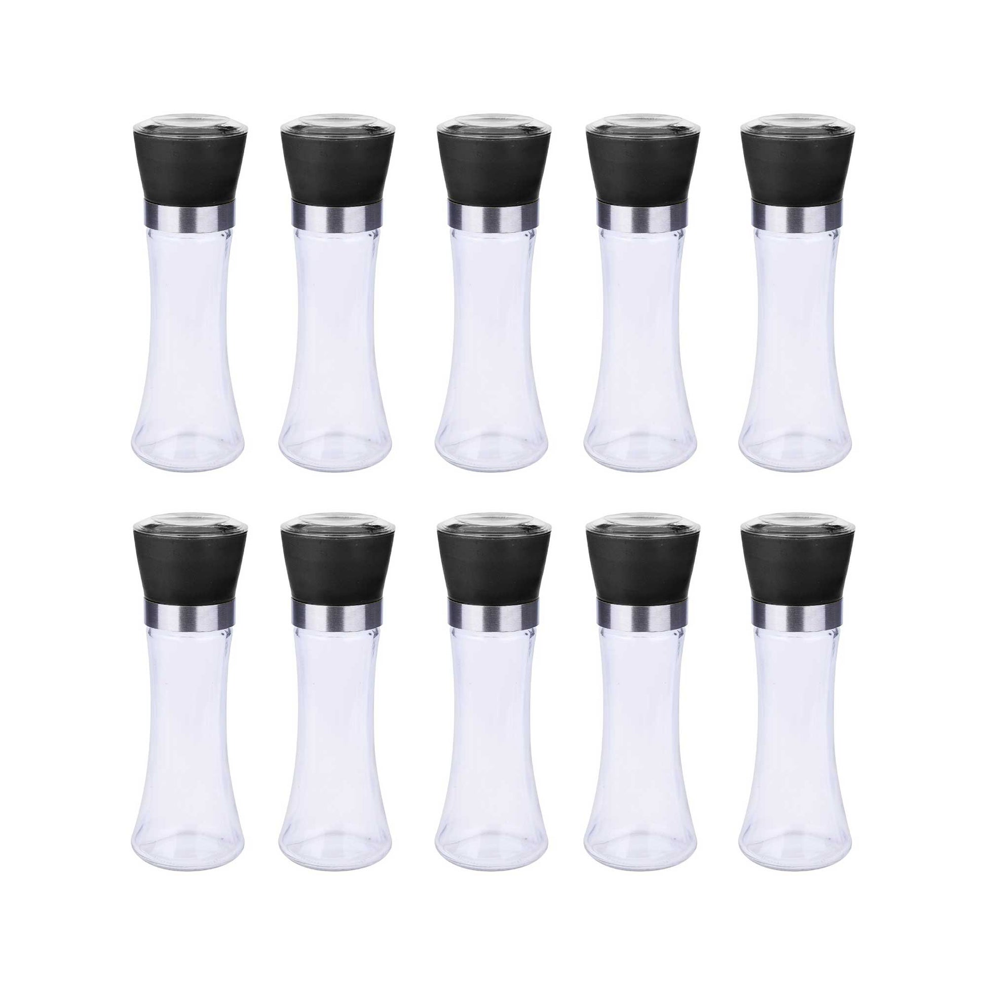 180ml salt or pepper tall glass grinder with ceramic core, featuring ergonomic design for easy hand grip and precise grinding. Grind peppercorns, course salt, cumin or other spices over food and enjoy the taste and fresh aroma of spices.
