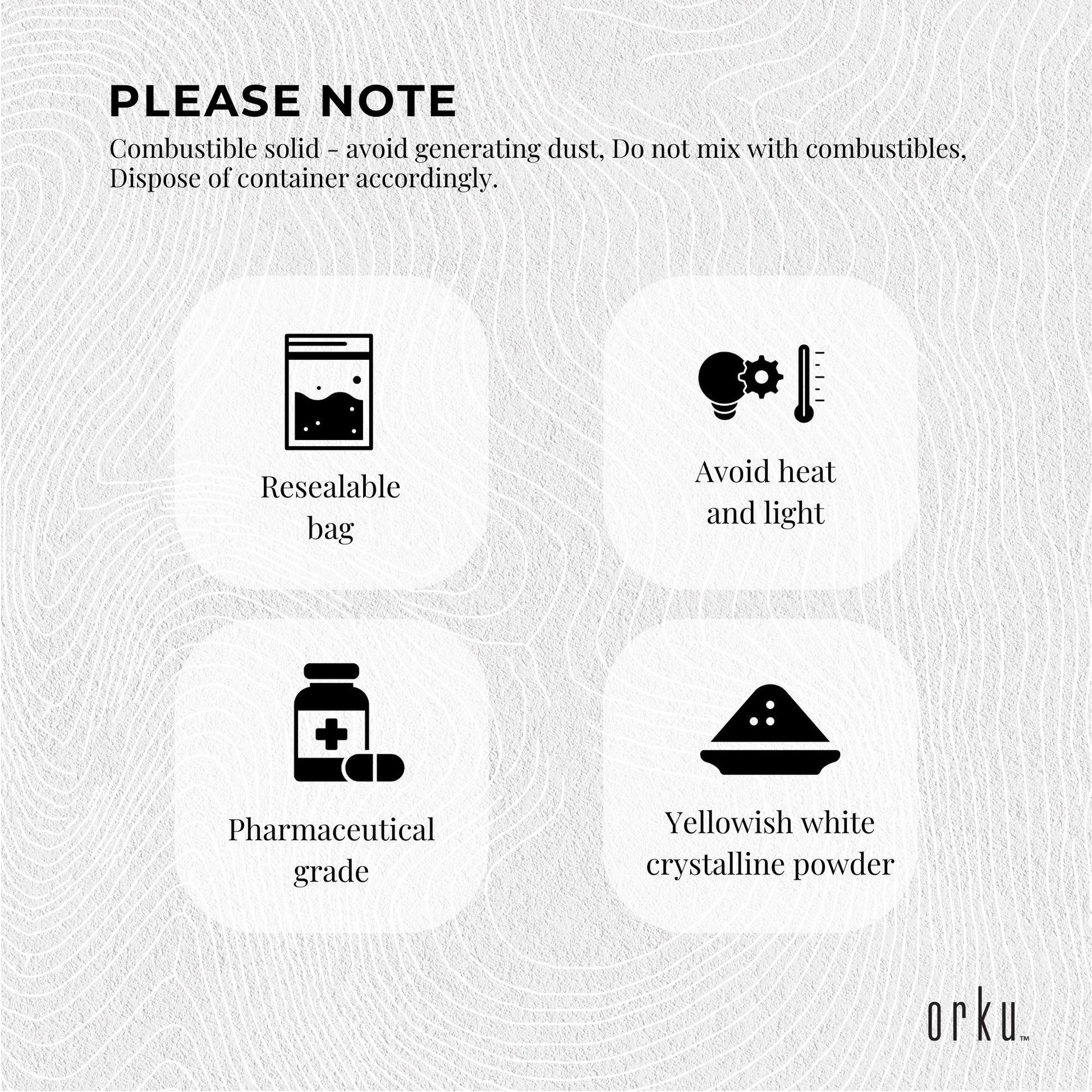 1kg Pharmaceutical Grade Sodium Ascorbate Powder in resealable bag.