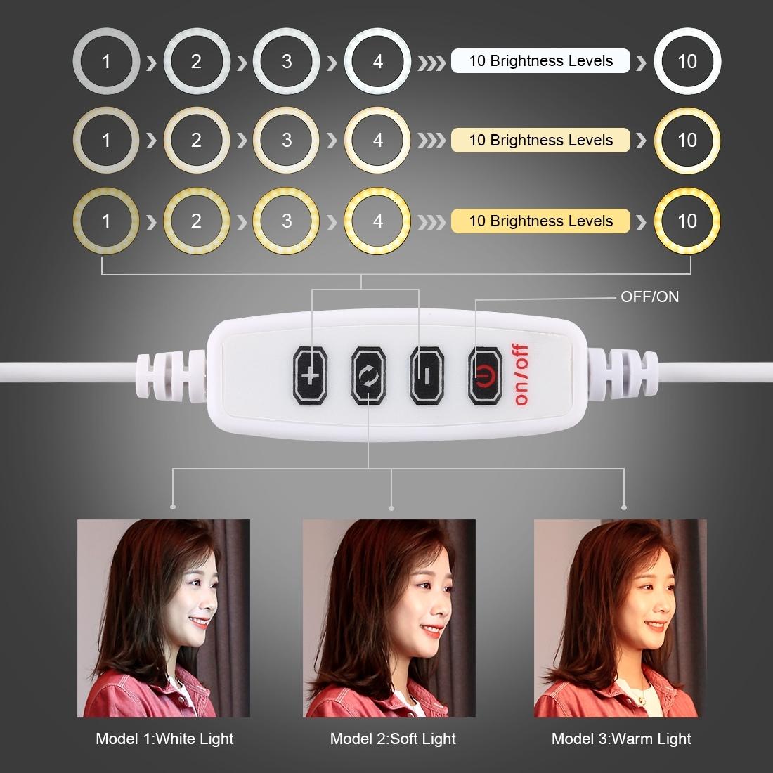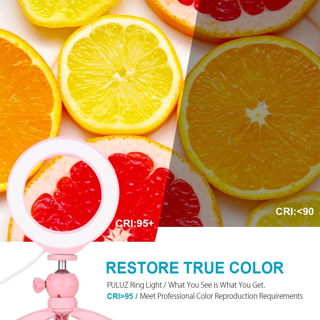 Package Includes:• 1 x 6.2 Inch 16Cm Light Desktop Tripod Mount Usb 3 Modes Dimmable Led Ring Vlogging Selfie Photography Video Lights With Cold Shoe Tripod Ball Head Pink