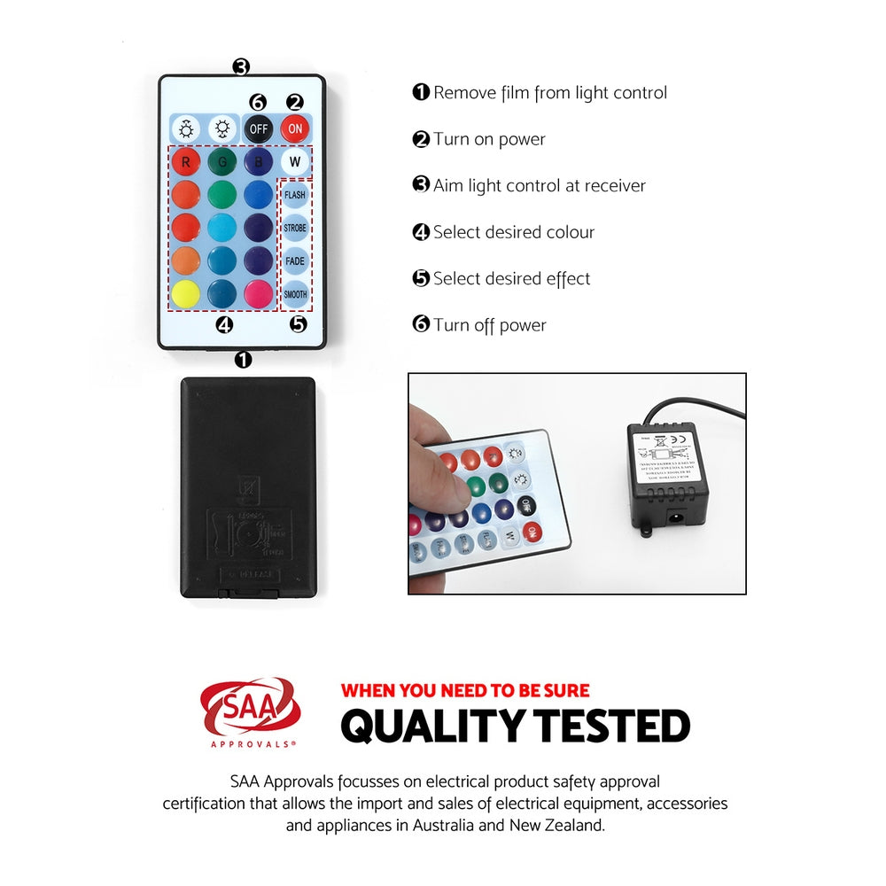 Features Stylish modern design Customisable LED light 16 LED colours Four flashing modes One drawer and one open shelf Smooth runners UV high-gloss finish Sturdy base SAA-approved adaptor *Note: Please remove protective film after installation. Please point the remote control towards receiver to customise LED lights.