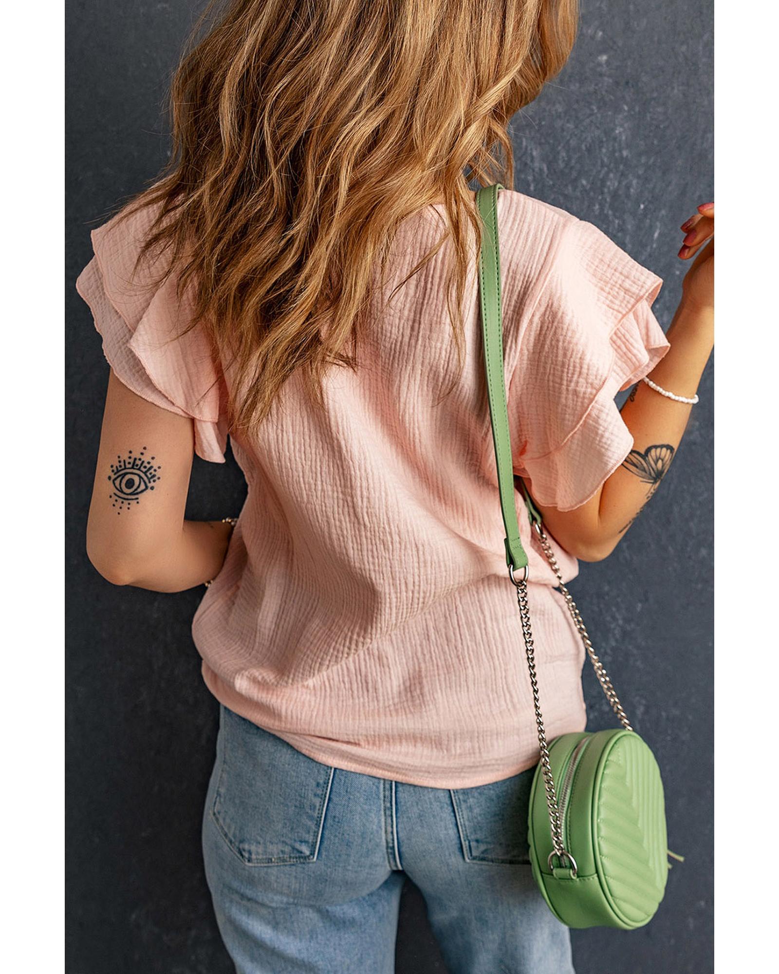 - Textured Tiered Ruffled Short Sleeve Blouse