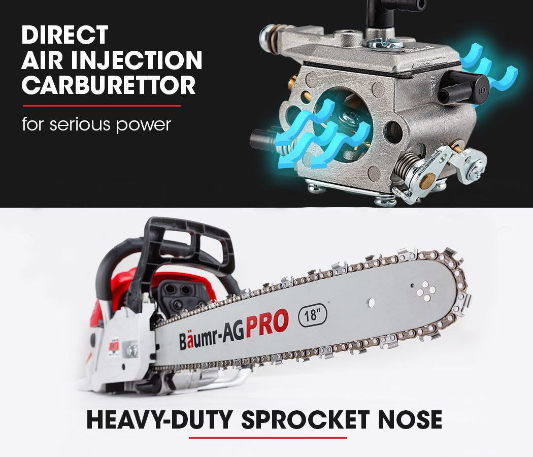 Make no mistake, this fast revving, perfectly balanced unit packs some serious punch, with Baumr-AG's premium range patented air injection carburettor delivering enough power to take on a whole variety of different jobs - from tree work, preparing firewood and sectioning those small to medium branches, to clearing overhang and removing bushfire hazards.