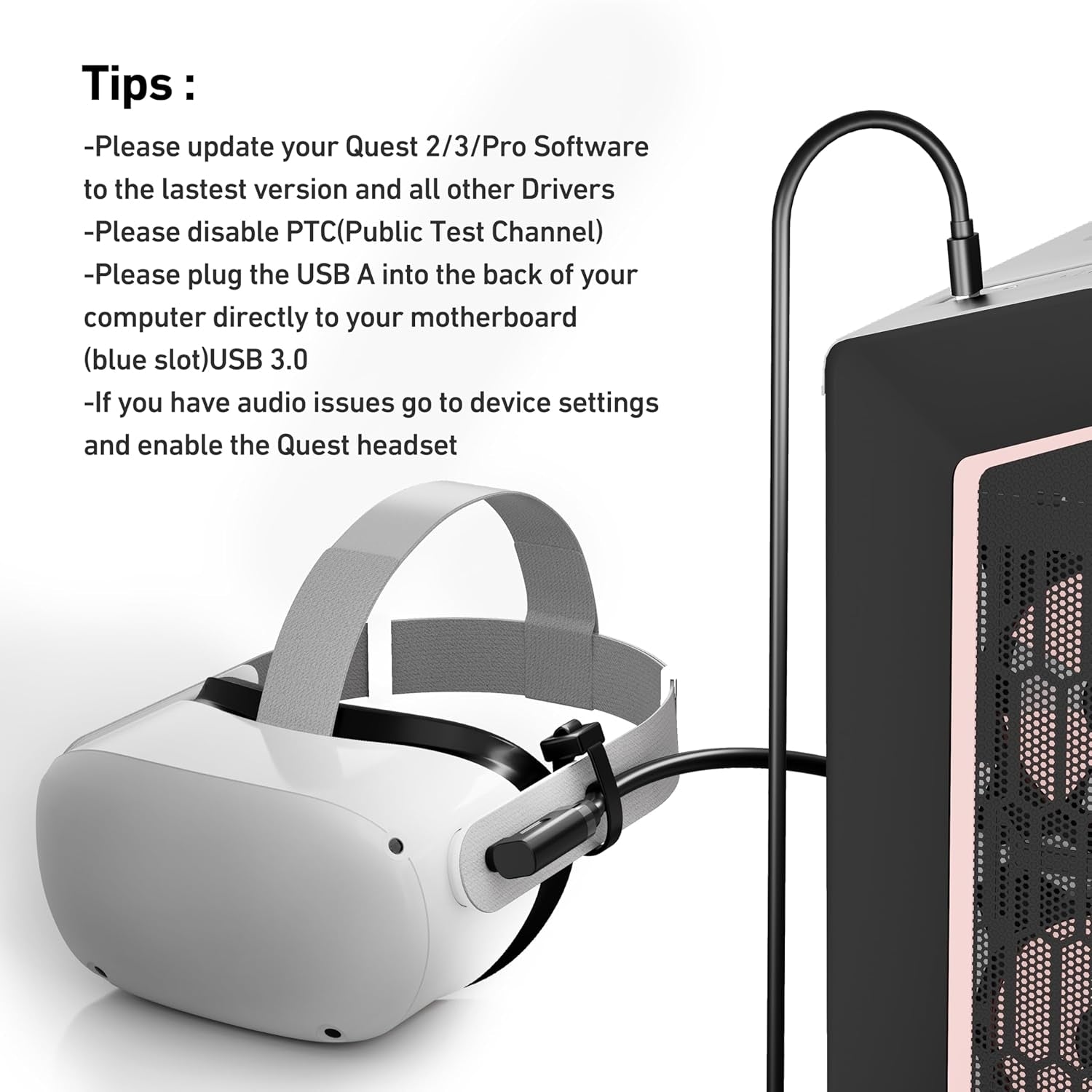 5Gbps High-Speed Performance Supports USB 3.0 transmission speeds for fast and stable data synchronization, delivering a smooth and uninterrupted VR gaming experience. The included Velcro strap secures the cable to your headset to prevent accidental disconnection. Note: For optimal performance, connect to a USB-A 3.1 or USB-A 3.0 port.