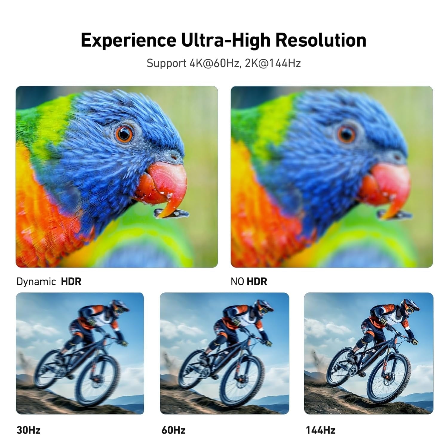 PLUG & PLAY Stream 4K UHD content from your USB-C laptop(such as MacBook Pro/Air, Surface), tablet or phone to bigger display, like monitors, TV, project with HDMI input. No driver required, plug in and play. Supports resolutions up to 3840 2160@60Hz including, 2K@144Hz, 1080P, 720p, 1600x1200, 1280x1024 for high definition monitors or projectors; Note: one-way cord, exclusively from USB-C host devices to HDMI displays.
