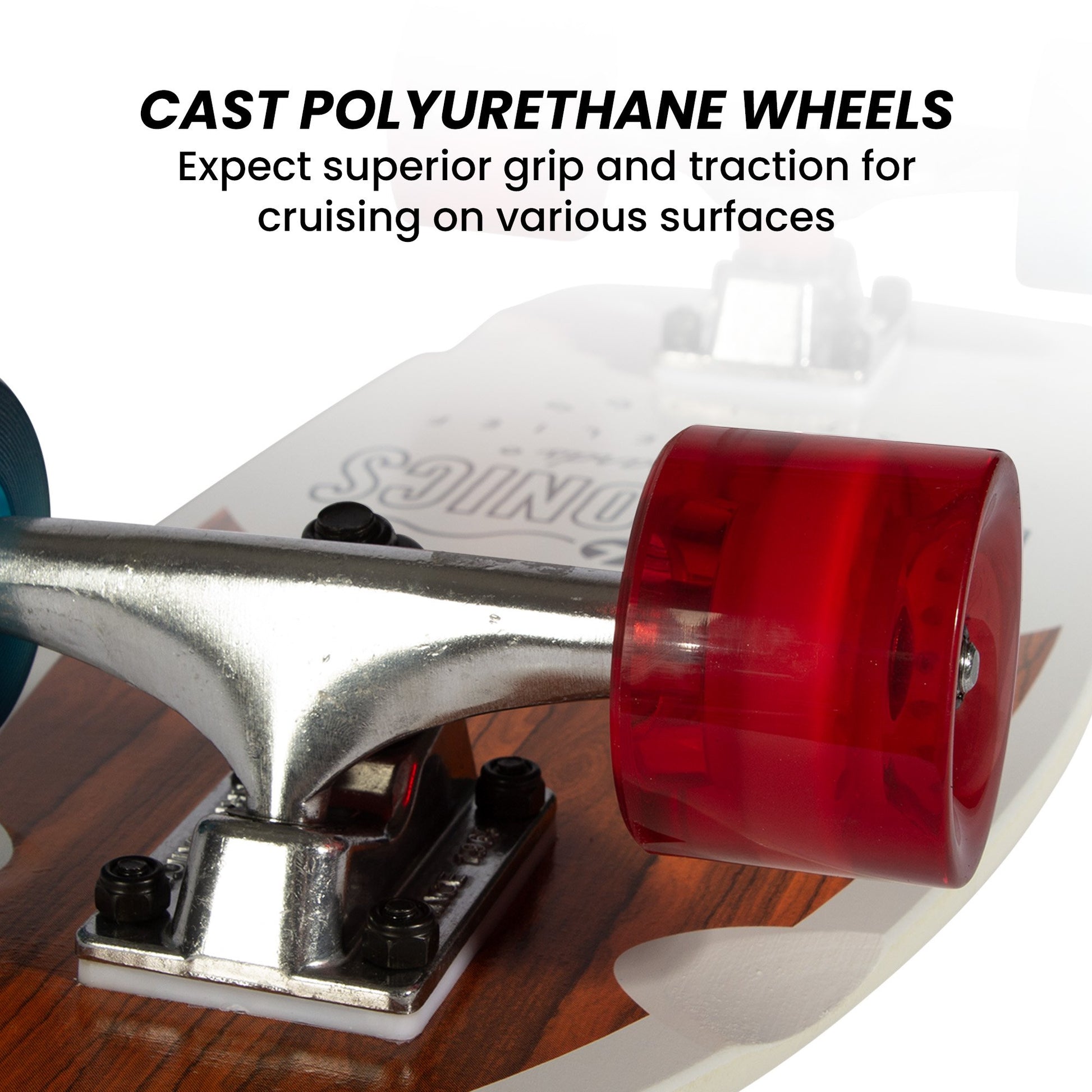 With the Kryptonics Mini Fat Cruiser Board, experience urban adventures like never before! Crafted for gnarly carving through the streets, this cruiser features a 23in x 7.75in mini fat wood deck, ensuring stability and control with its single kicktail design. Grip the road confidently with its 7-ply maple construction and 2pc split grip (80ab) tape, while the patented wheel lock keeps your board steady and prevents unwanted movement during storage. And with carbon steel ABEC 3 bearings, youll find yourself gliding effortlessly on concrete terrain!