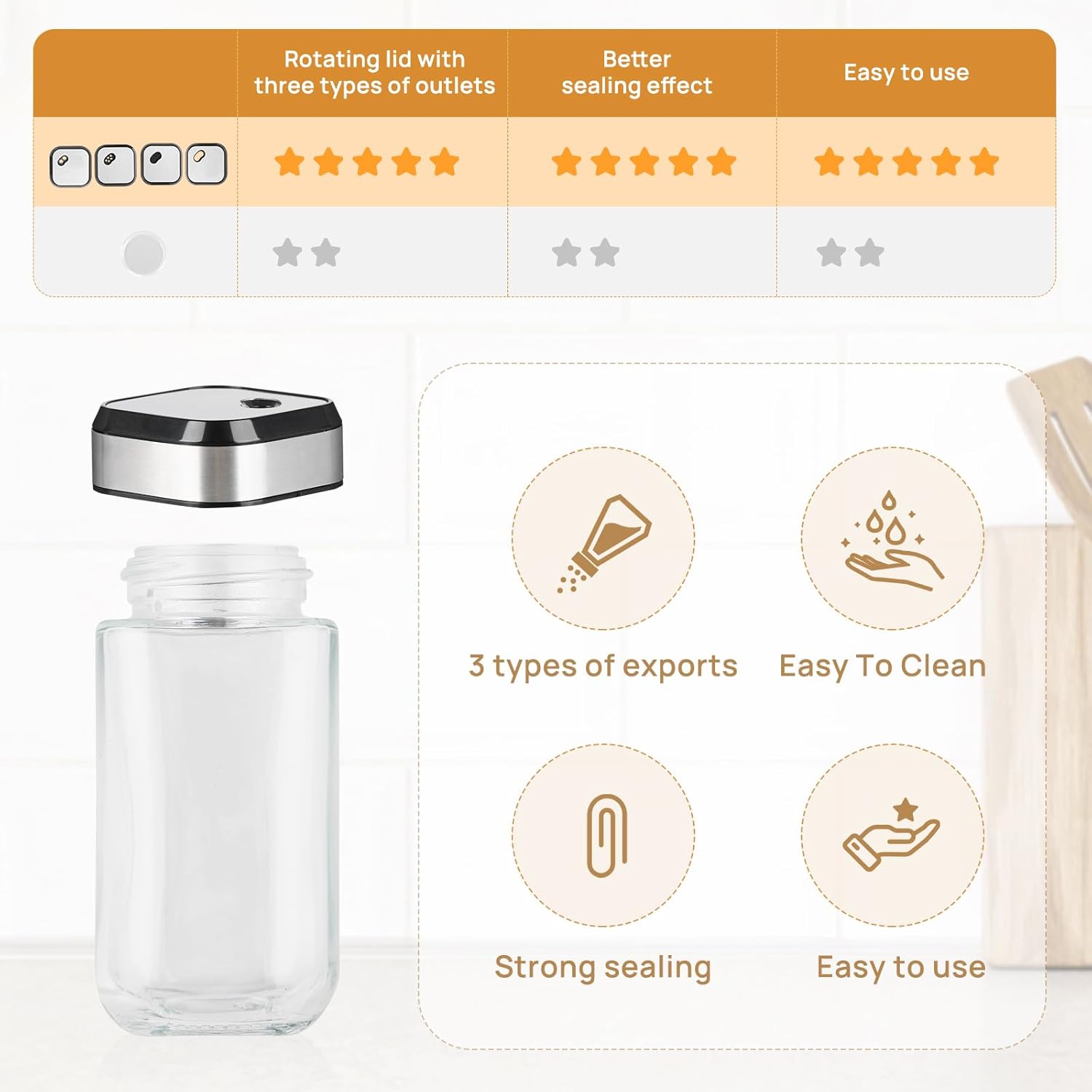 20 PREMIUM GLASS JARS INCLUDED: Comes with 20 refillable glass spice jars with metal lids—perfect for storing a wide variety of herbs, salts, and seasonings. Transparent bottles make identification quick and easy.
