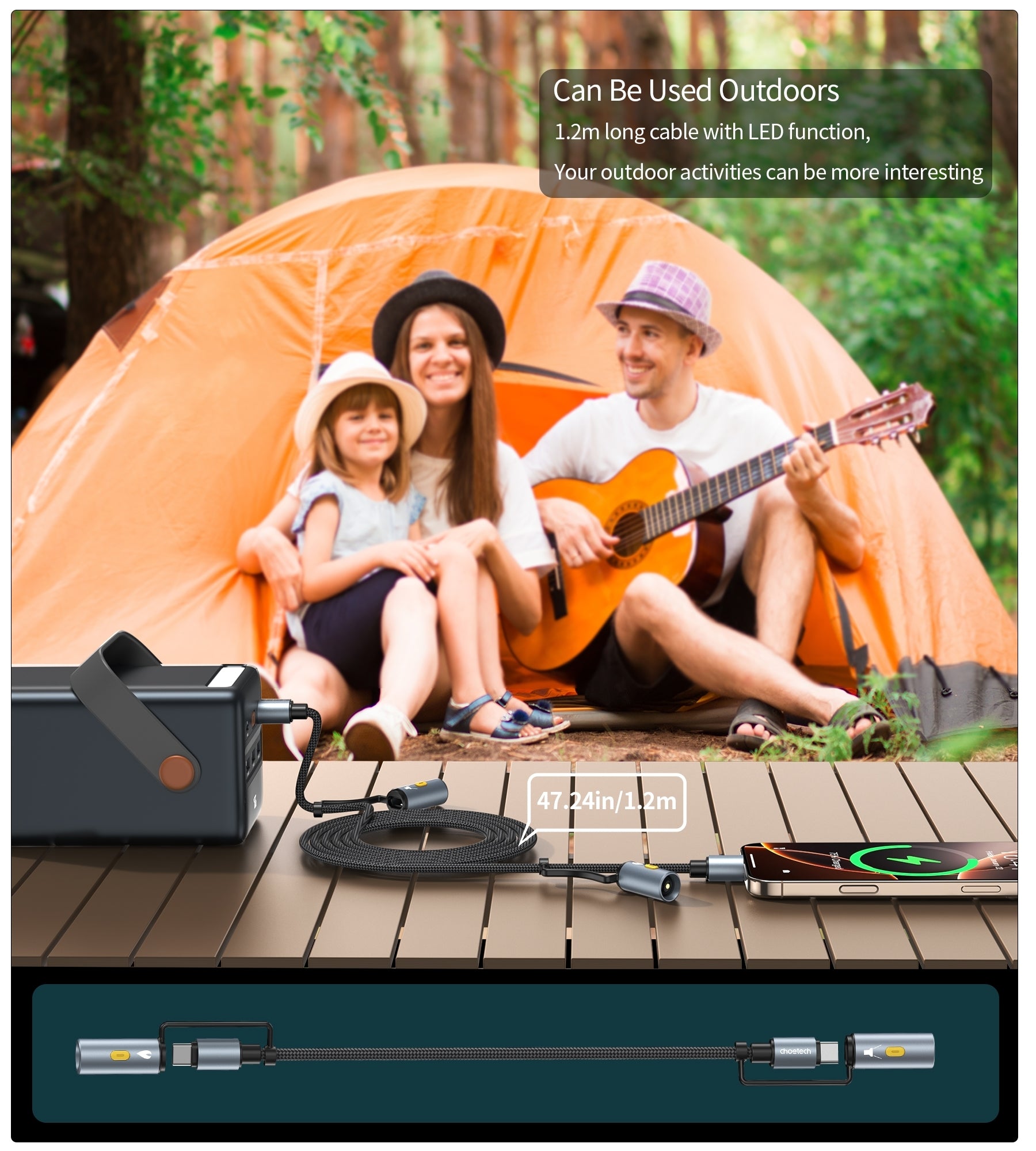 4-in-1 Versatility This braided USB-C to USB-C cable includes on lamp for clear lighting and a built-in cigarette lighter connector, making it perfect ofr both home and travel use.durable and reliable ofr all your needs!