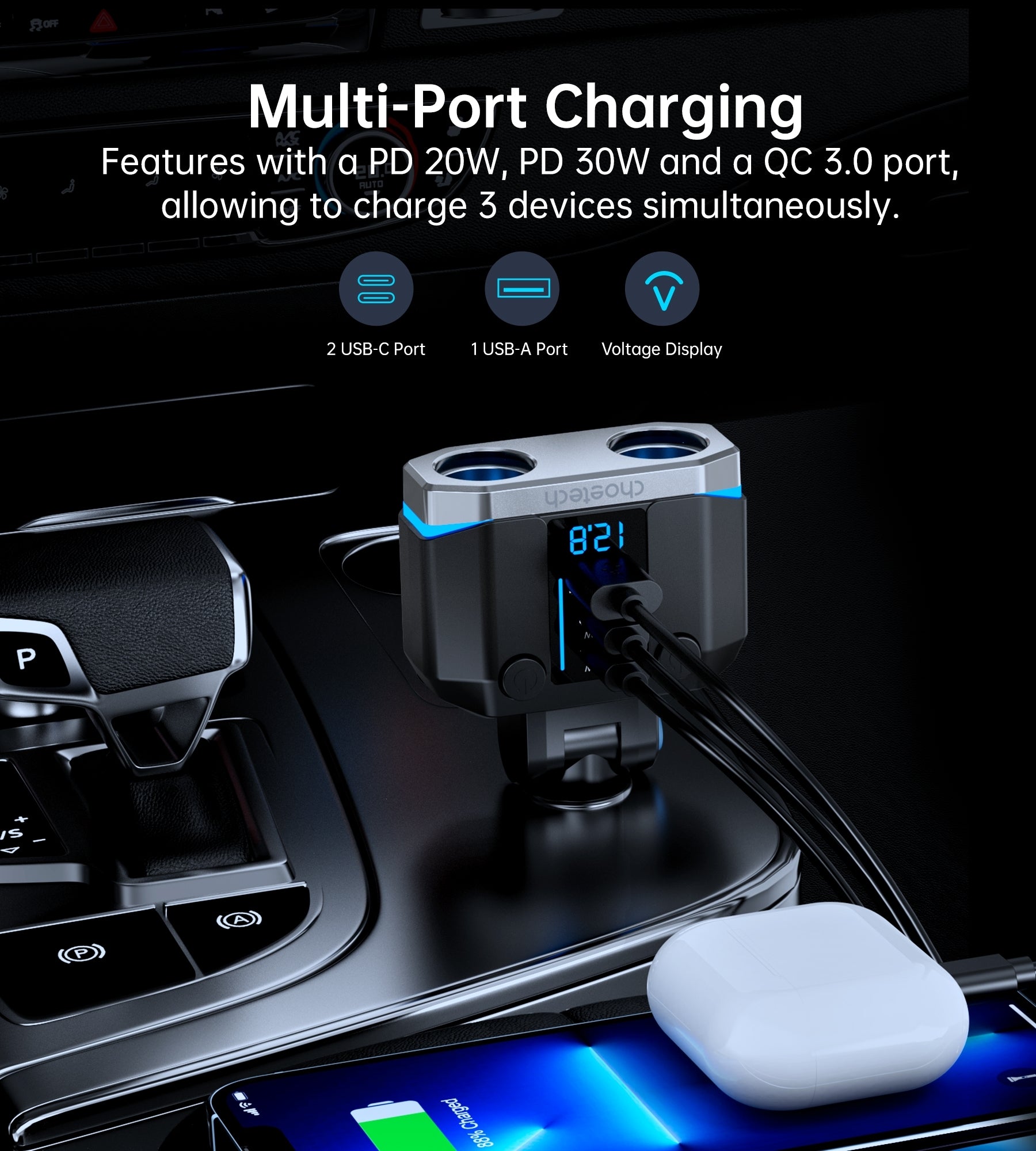 Universal Compatibility Works with iPhones, Samsung devices, Android gadgets, iPads, and a variety of 12-24V car accessories like GPS, cameras, and more.