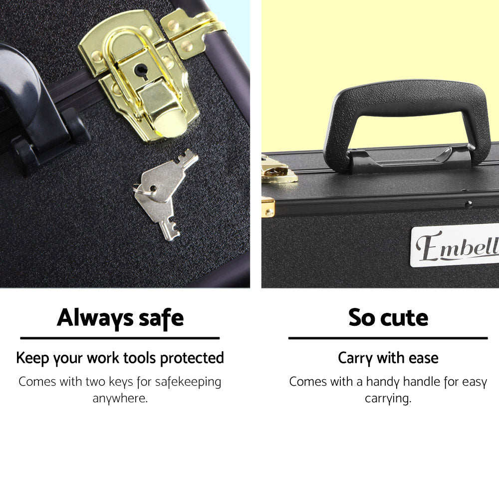 Portable Beauty Makeup Case Diamond Black Gold The beauty case is lightweight and easy to carry around with or without the shoulder strap with ample storage space.