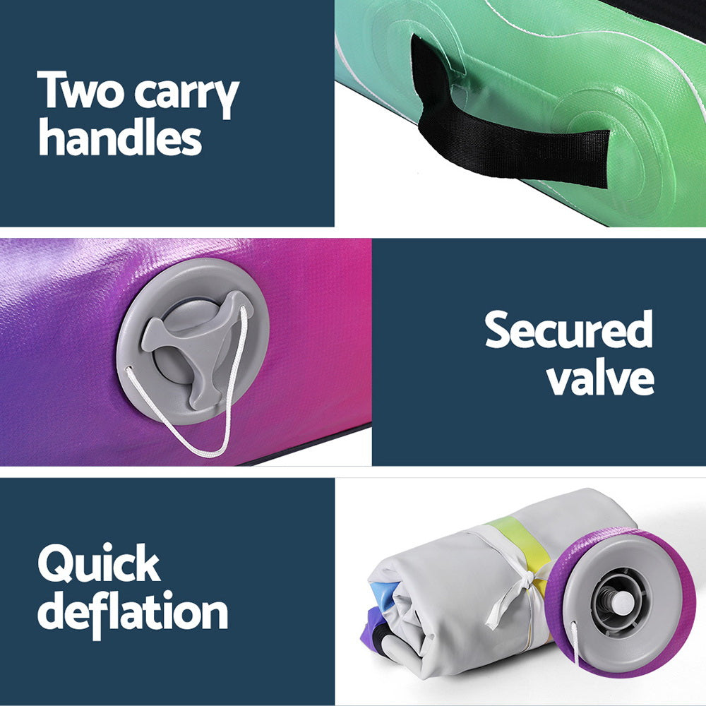 For hours of jumping, fighting and tumbling fun, the Everfit Air Track is a great addition to your home gym. Perfect for gymnastics, martial arts, yoga, cheerleading and more, the 1m air track is a versatile and essential tool for your training regime. Crafted with drop-stitched 1000-denier double-wall fabric, the Everfit air track ensures durability and stability during intense workouts. Softer than foam and designed for robust use, the air track won't twist or bend and helps to significantly reduce impact. Its anti-slip and wear-resistant surface provides a secure grip, allowing you to perform your moves with confidence. The integrated valve system allows for quick and easy inflation and deflation, while the compact roll-up design makes storage and transport a breeze. With two convenient carrying handles and a repair kit included, the Everfit 1m Air Track is the perfect choice for athletes seeking a reliable and portable training solution.