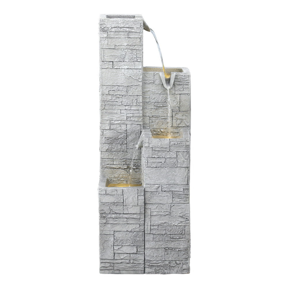 Gardeon Solar Fountain Water Feature Outdoor Indoor 4-Tier Square Cascading Beige