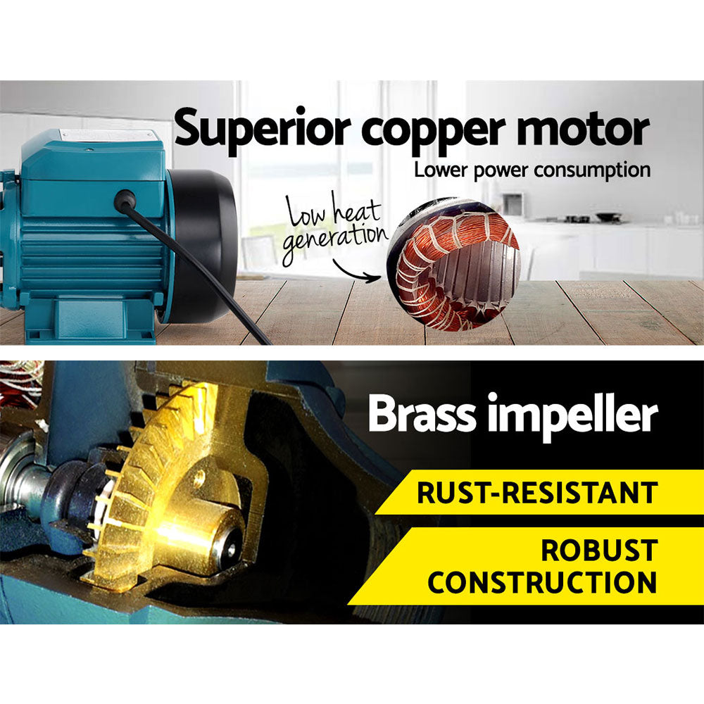 This pump is ideal for pool pumping, increasing the water pressure in the pipe, garden sprinkling, irrigation, cleaning etc. It has a reliable rust-resistant brass impeller and 35l per min maximum flow rate! Delivery head of 35 metres and suction up to 8 metres. This pump is simple to install and easy to use. No need of sophisticated knowledge of pumping but just a little imagination of how much you can do with it. It will pump up the water in no time.