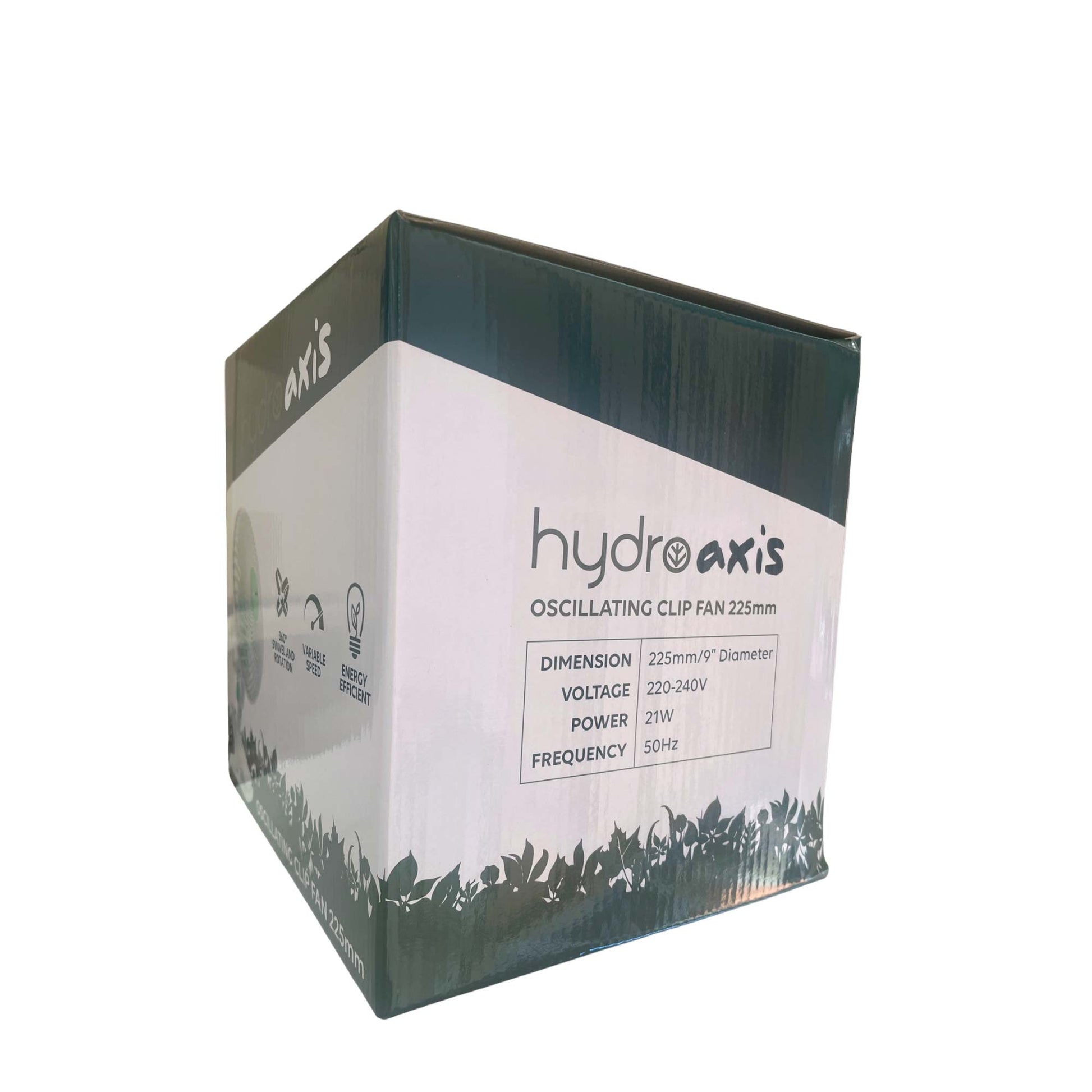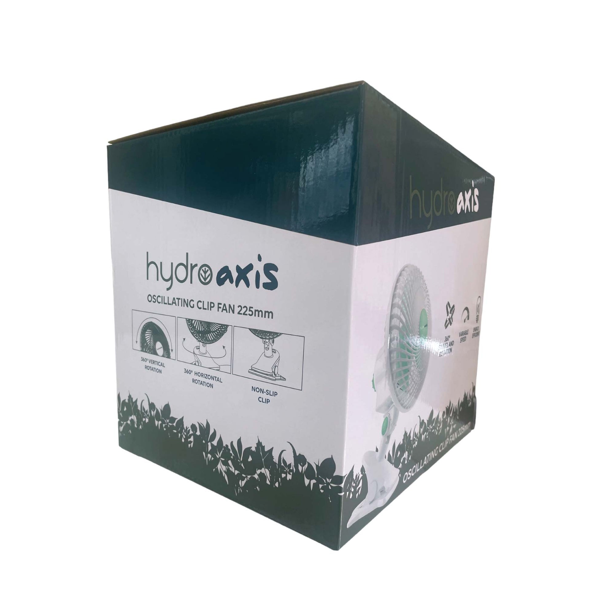The Hydro Axis Oscillating Clip Fan 225mm (diameter) is perfect for any growing environment. It has 360 degree swivel and rotation, allowing air flow from any angle. It has variable speed and a strong, sturdy, non-slip clip. This allows it to be attached to tent poles etc. It also has a screw hole for wall mounting.