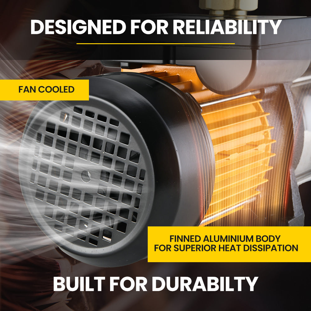 With its class leading 64m head, constant 9000L/Hr flow rate @ 5.6 bars of pressure, you can reliably pump water on-demand over 2 stories high, whilst accurate adjustment of activation pressure allows precise fine tuning ensuring pressure never exceeds your systems ability. Moreover, this unit features an automatic no water shutdown function to prevent any damage that may occur from dry pumping.