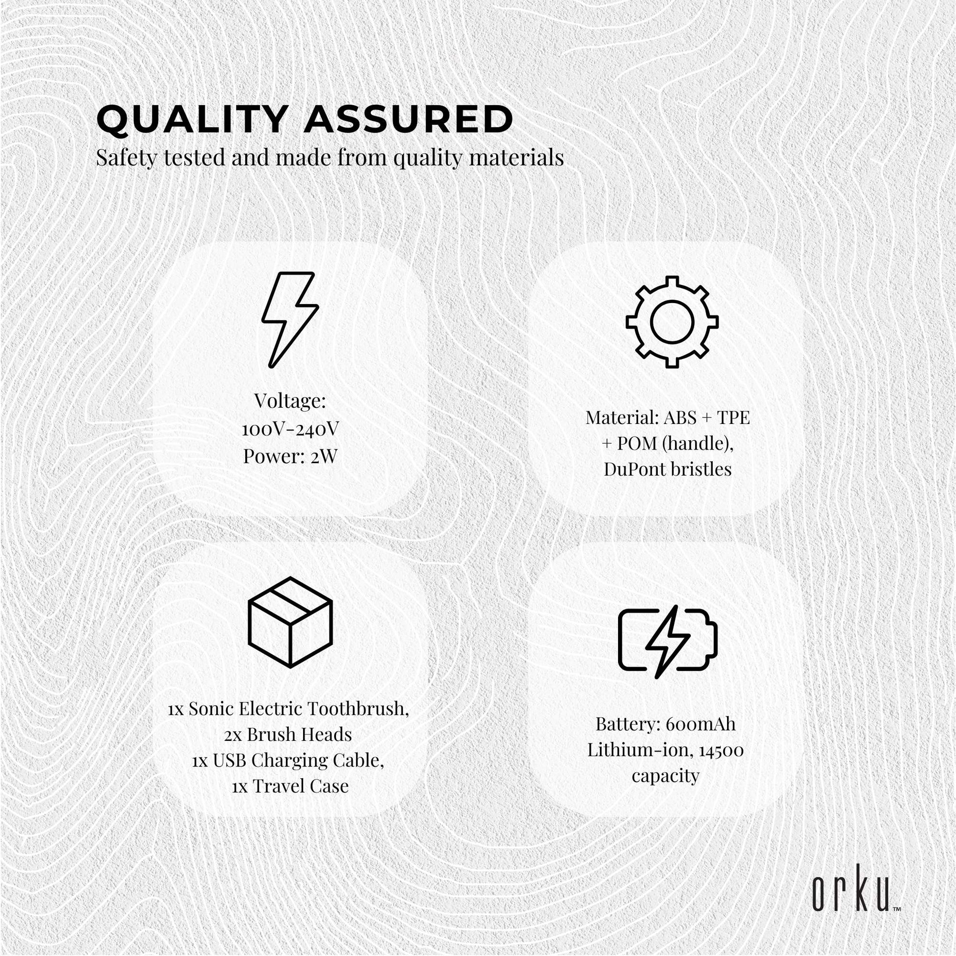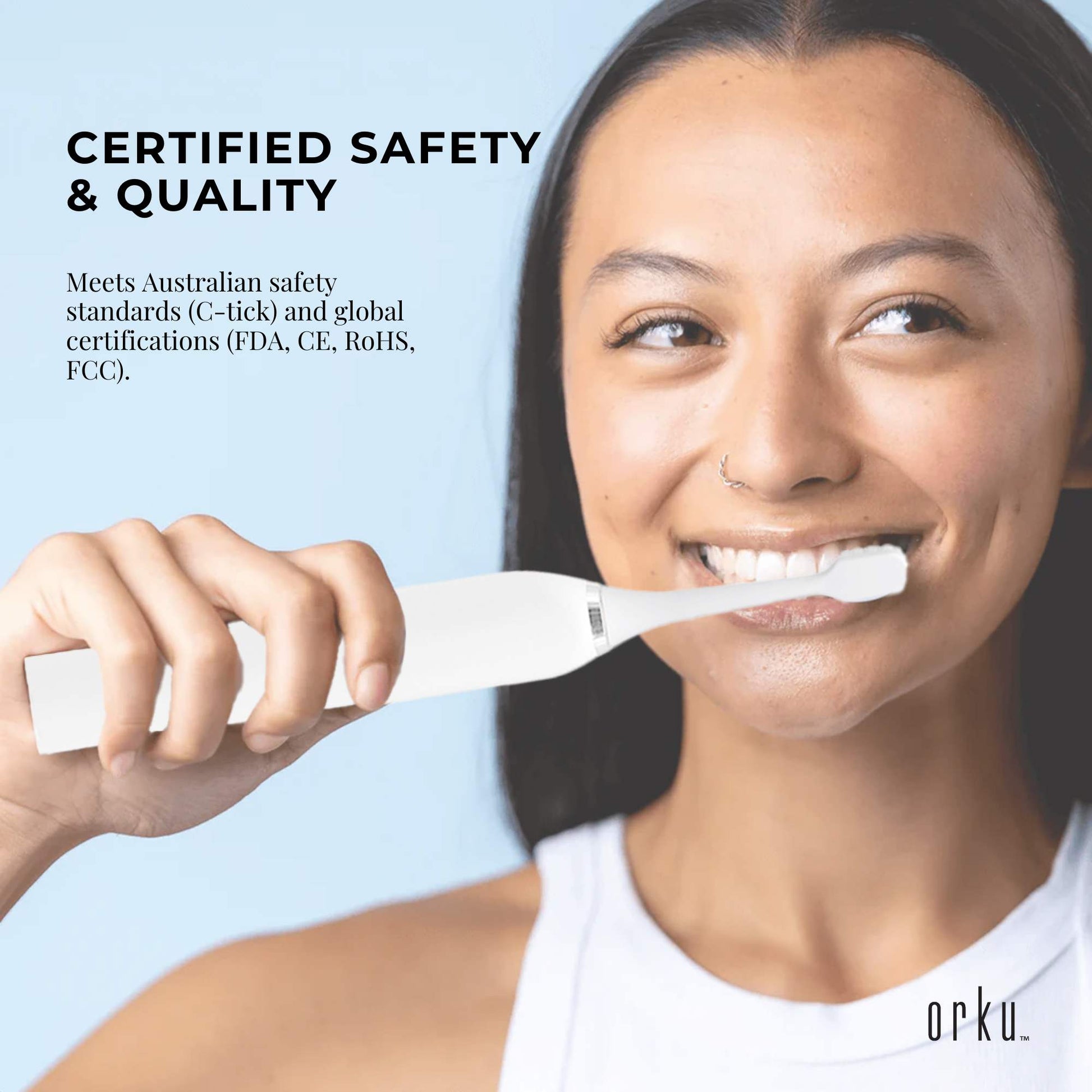 The Smart Sonic Electric Toothbrush, is a portable USB and wireless rechargeable teeth cleaning device, which comes with 2 brush head attachments in a handy hard covered travel case. Advanced magnetic levitation sonic cleaning technology produces up to 38,000 high frequency brush strokes per minute for an exceptional and dynamic everyday cleaning action. Charging within 4 hrs via USB and can last up to 60 days, this waterproof electric toothbrush offers 5 brushing modes for varying oral care needs and 100 % Du-Pont brush bristles. Features a 2 minute auto-timer as recommended by dentists, giving a signal at 30 second intervals to move to the next area of your mouth, ensuring an all over clean. A professional and quality electrical device, it has the C-tick for Australian standard safety, along with FDA, CE, RoHS, IPX7, FCC certificates.