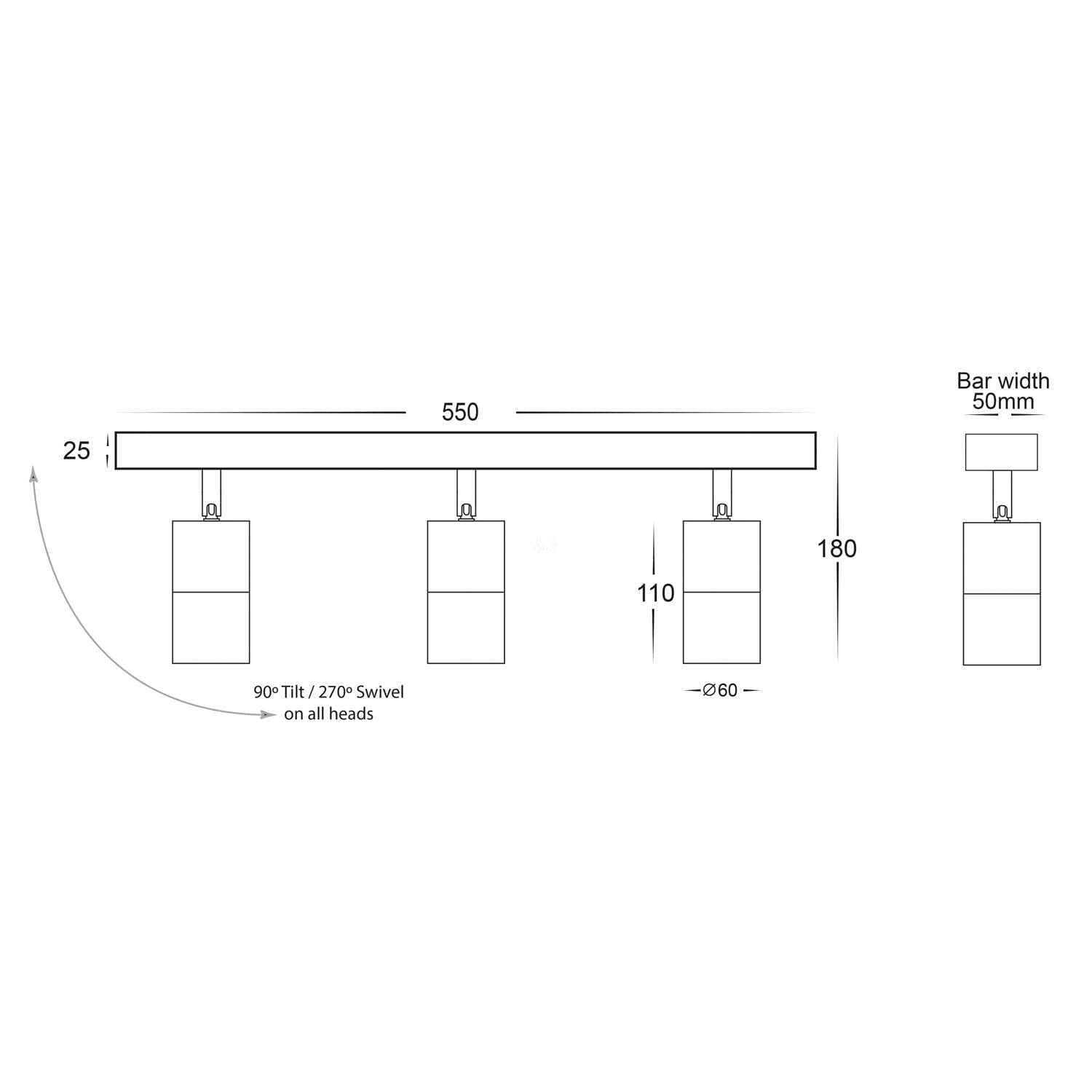 Tivah 3 x 5W 240V GU10 LED Tri-Colour 3 Light Bar Adjustable Spotlight, White