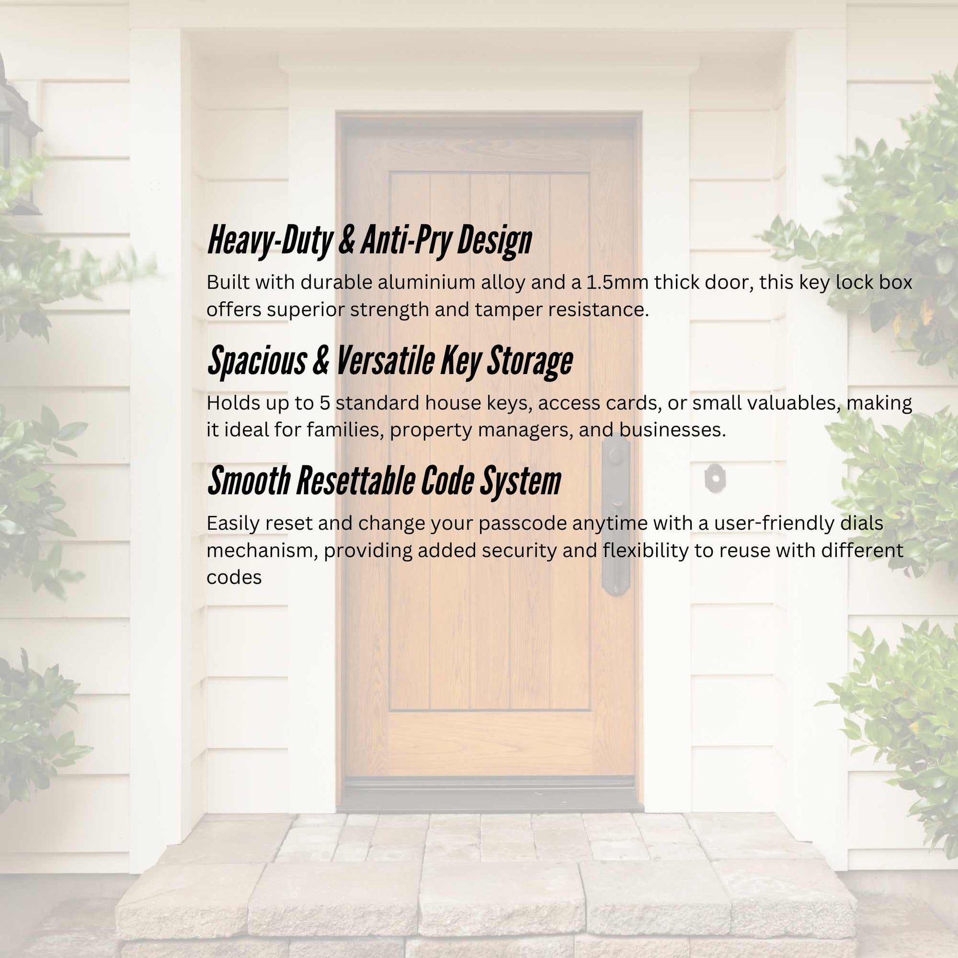 Weatherproof and Rust-Resistant – Designed to withstand outdoor conditions, making it perfect for home entryways, real estate agents, rentals, and Airbnb properties.