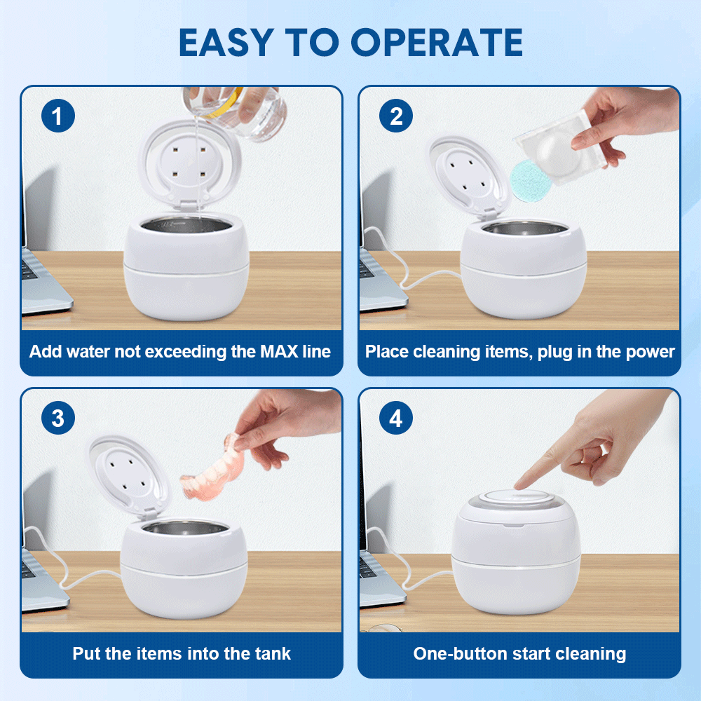 Combining high-frequency ultrasonic waves and UV light technology, this Ultrasonic Cleaner delivers a thorough, deep and efficient cleaning experience for a variety of items such as jewellery, dentures, retainers, and various everyday accessories. making it an ideal choice for home use or travel.