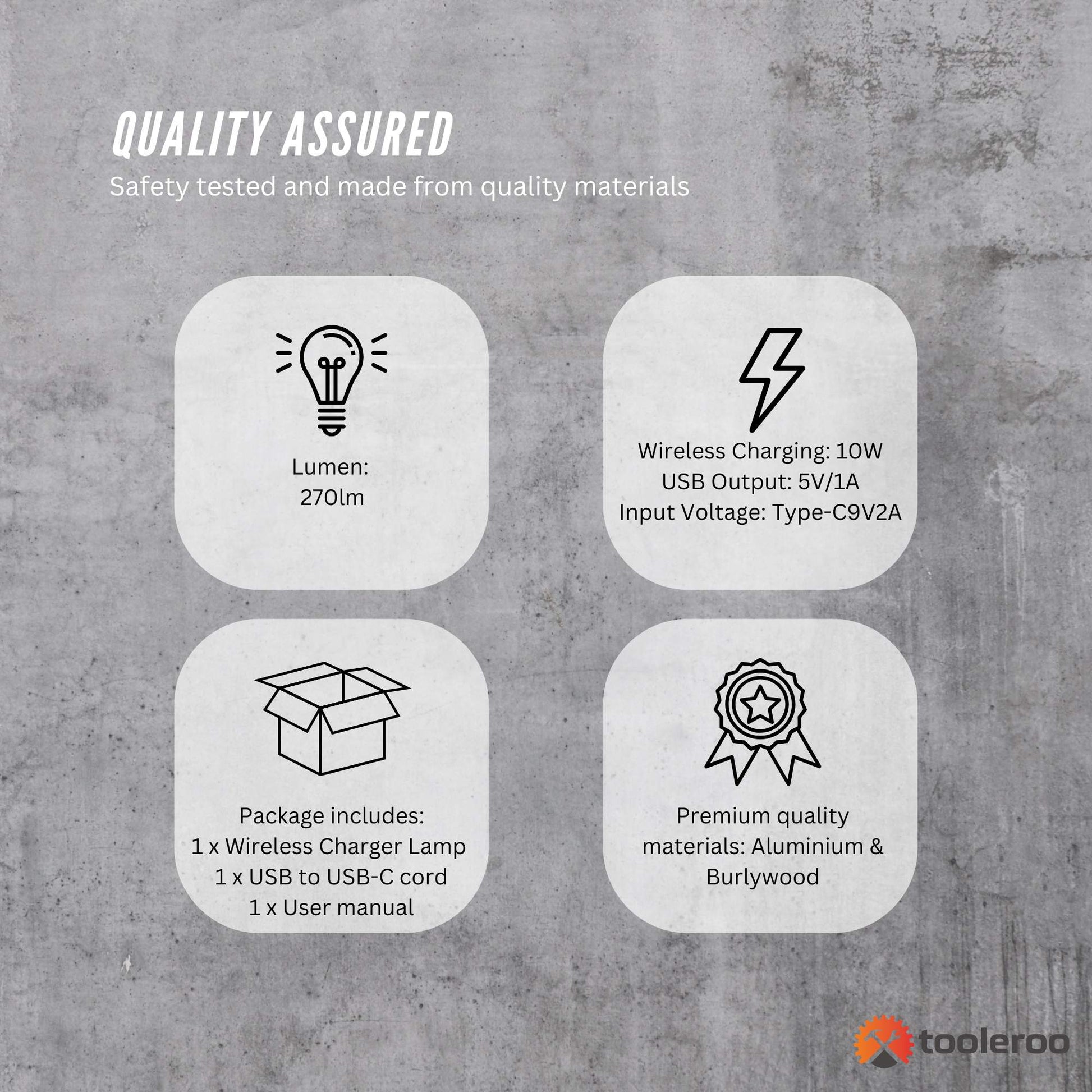 10W fast wireless charging and USB charging allowing multiple devices charging at once.